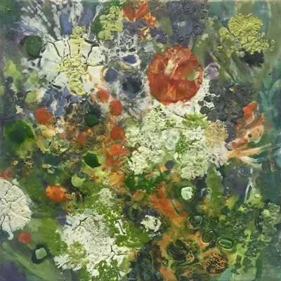 Marilyn Banner is a painter whose encaustic work references landscapes and explores her vision of the natural world. Mary McCoy is a multi-disciplinary artist and writer who focuses on the environment. As artists who have exhibited together on and off since the late 1980s, they always focus on the human relationship with the earth. Their paths are converging again in their mutual response to their separate detailed exploration of lichens. Through this exhibition, their work will show us the beauty and intricacies that this organism has through its growth on rock, soil, or man-made objects.