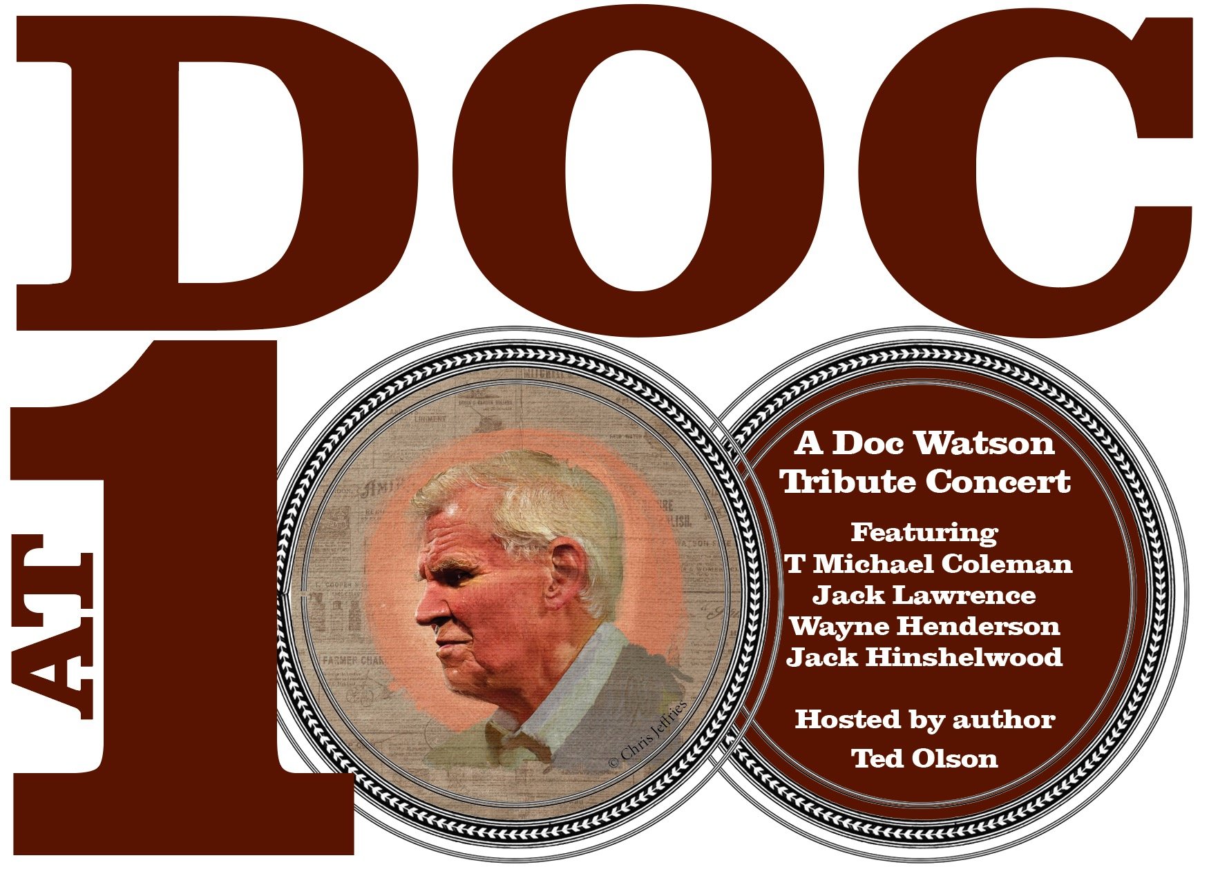 DOC AT 100 is a concert program celebrating the life and legacy of Doc Watson by those who performed with Doc, were profoundly influenced by his music, and called him a friend. This includes T. Michael Coleman and Jack Lawrence, who performed, recorded, and toured with Doc longer than any other musicians he worked with. Joining T. Michael and Jack, are fellow guitarists Wayne Henderson and Jack Hinshelwood, who were both heavily impacted by Doc’s music through his many recordings and performances, and Wayne counted Doc as a close friend, especially in Doc’s later years when he enjoyed visiting Wayne in his guitar making shop in Rugby, Virginia.