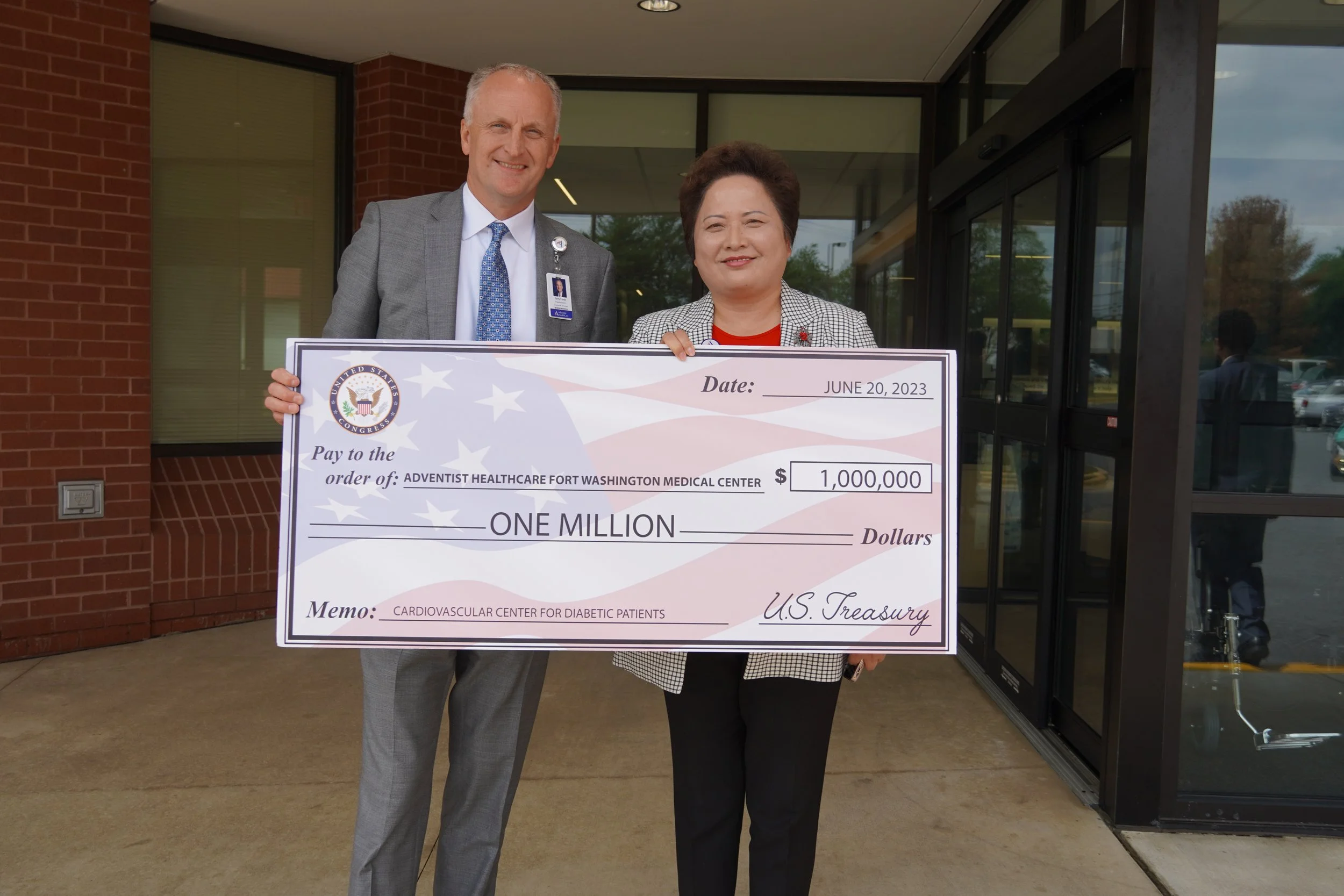 U.S. Sens. Ben Cardin and Chris Van Hollen visited Adventist HealthCare Fort Washington Medical Center on June 20 to deliver a $1 million check – funds dedicated to supporting the hospital’s Cardiovascular Center for Diabetic Patients.
